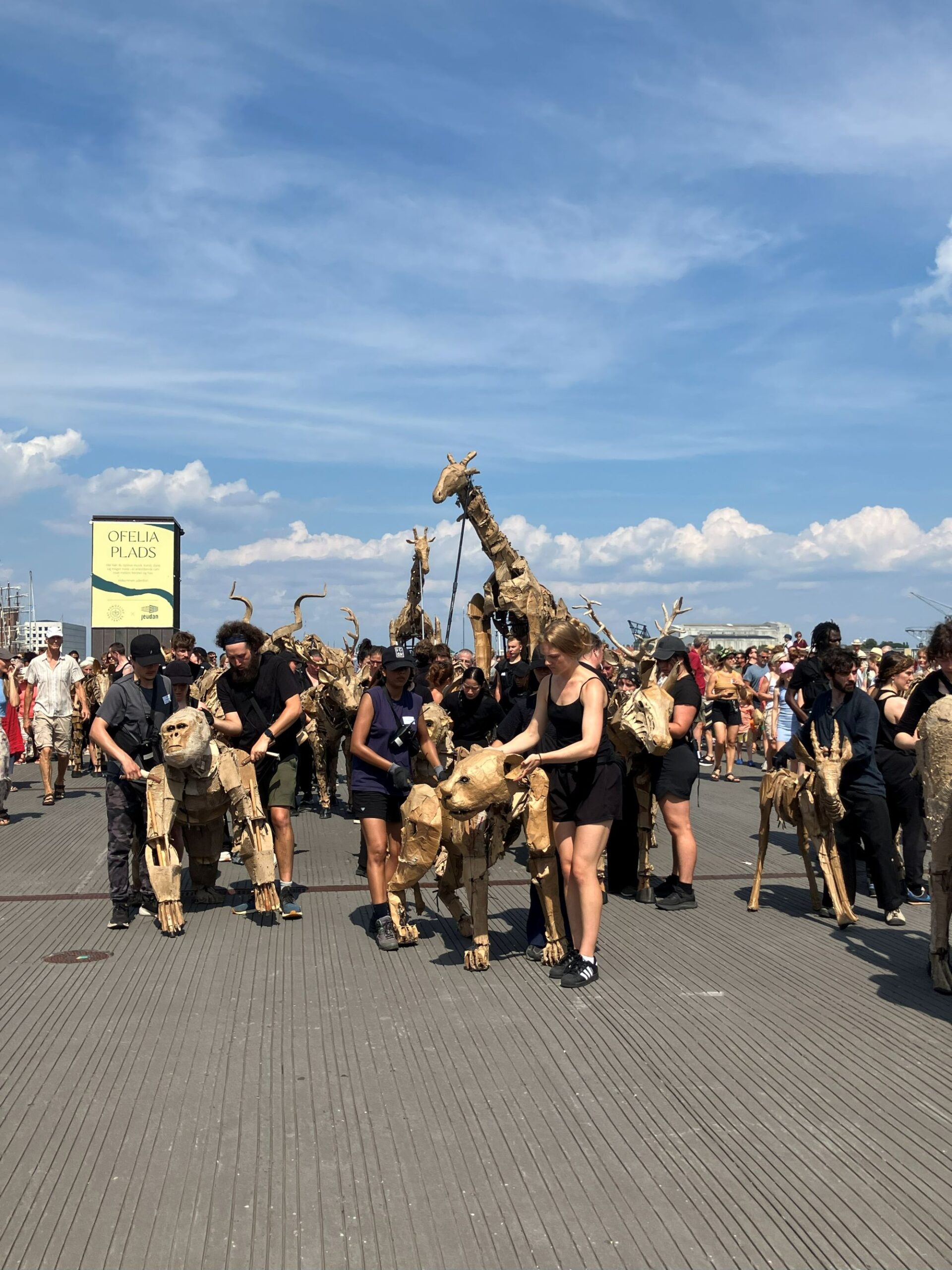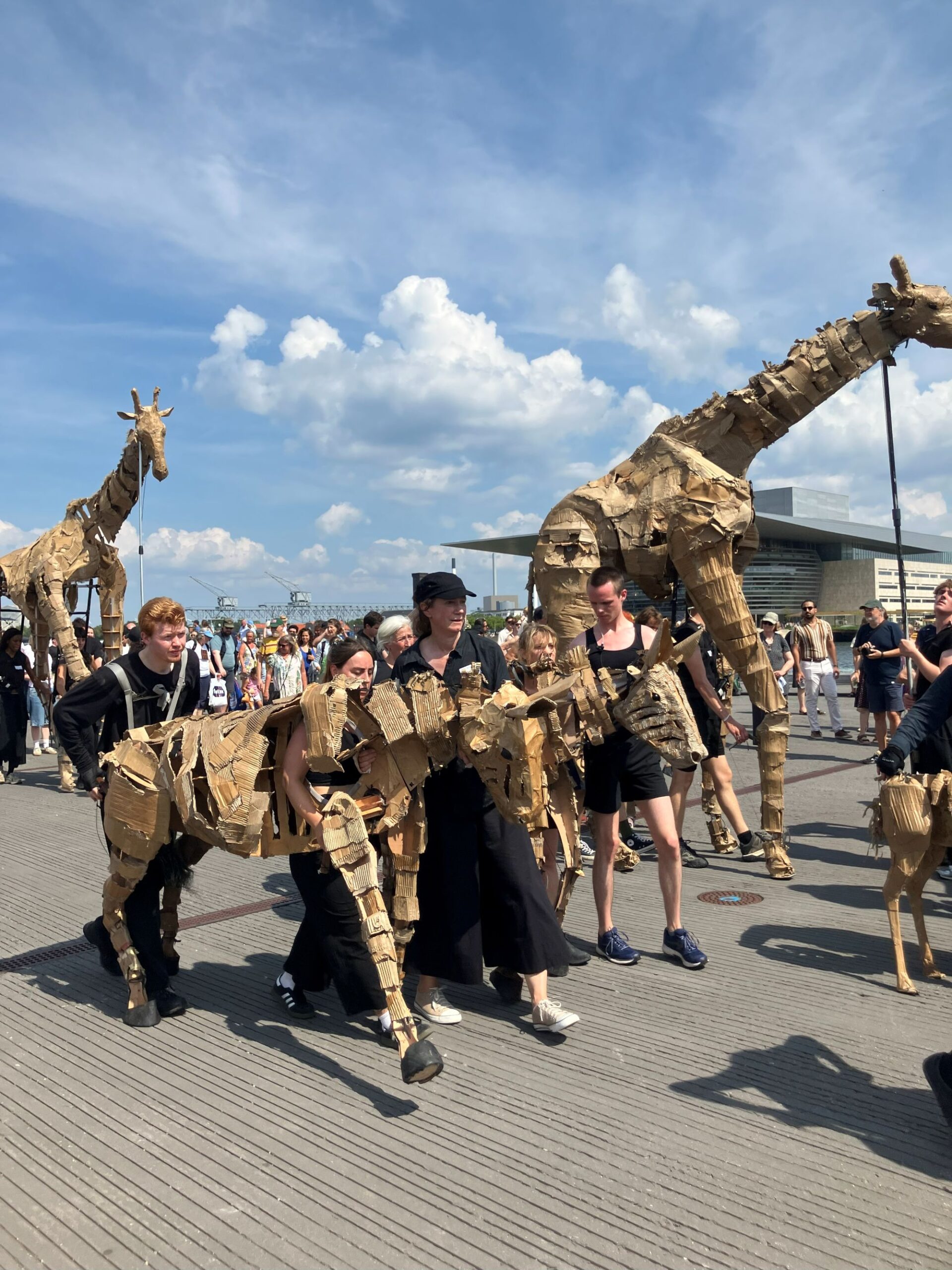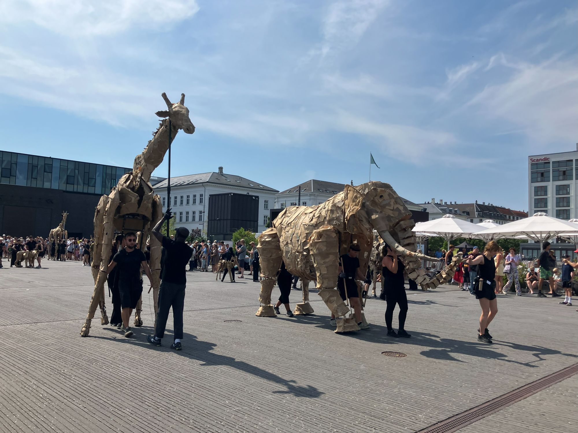 De smukke fuldstørrelse dyredukker i The Herds tilbragte en varm eftermiddag på Ofelia Plads, som led i deres 20.000 km lange rejse fra Congo til Nordkapp for at sætte fokus på klimaforandringer.