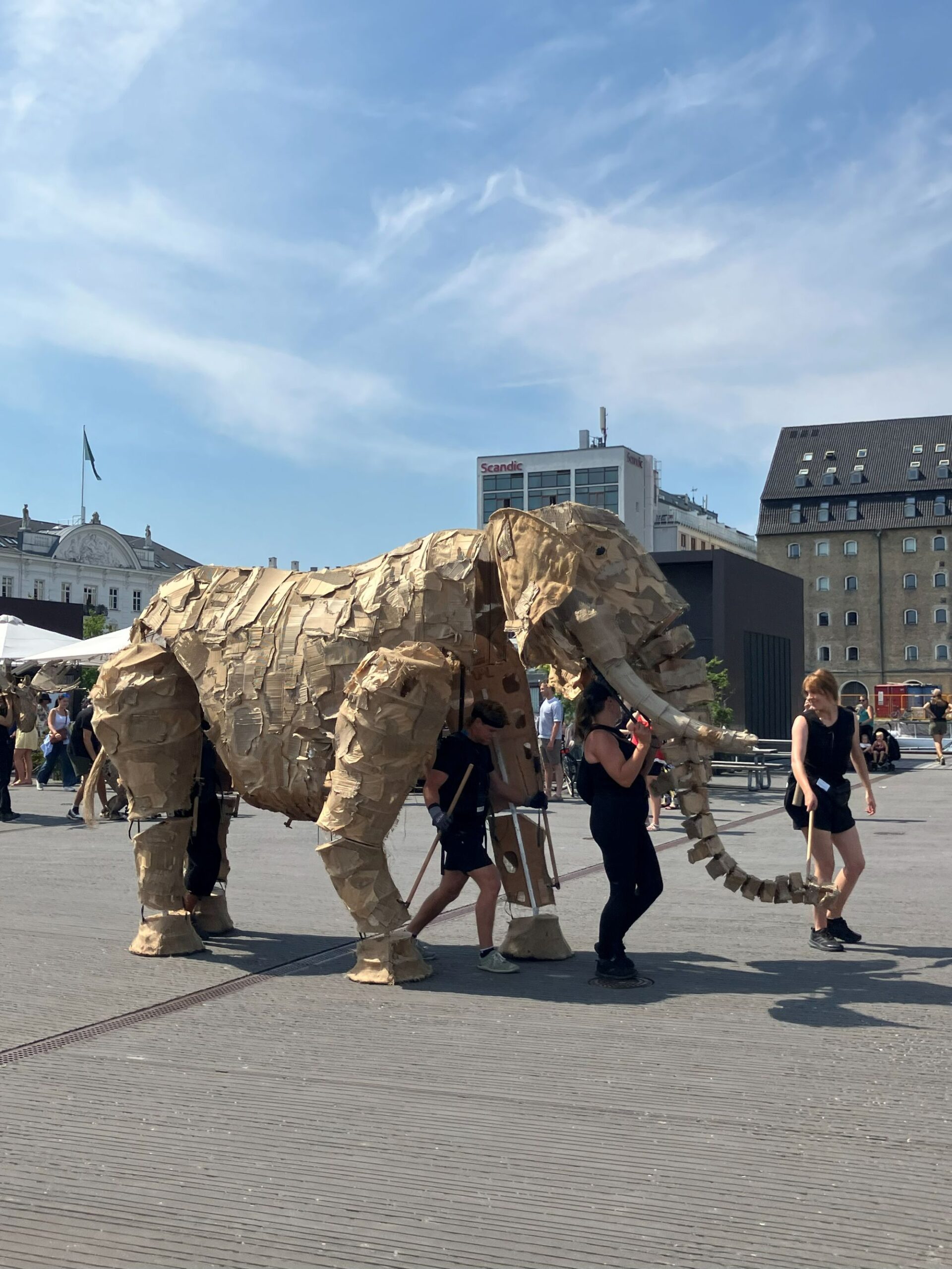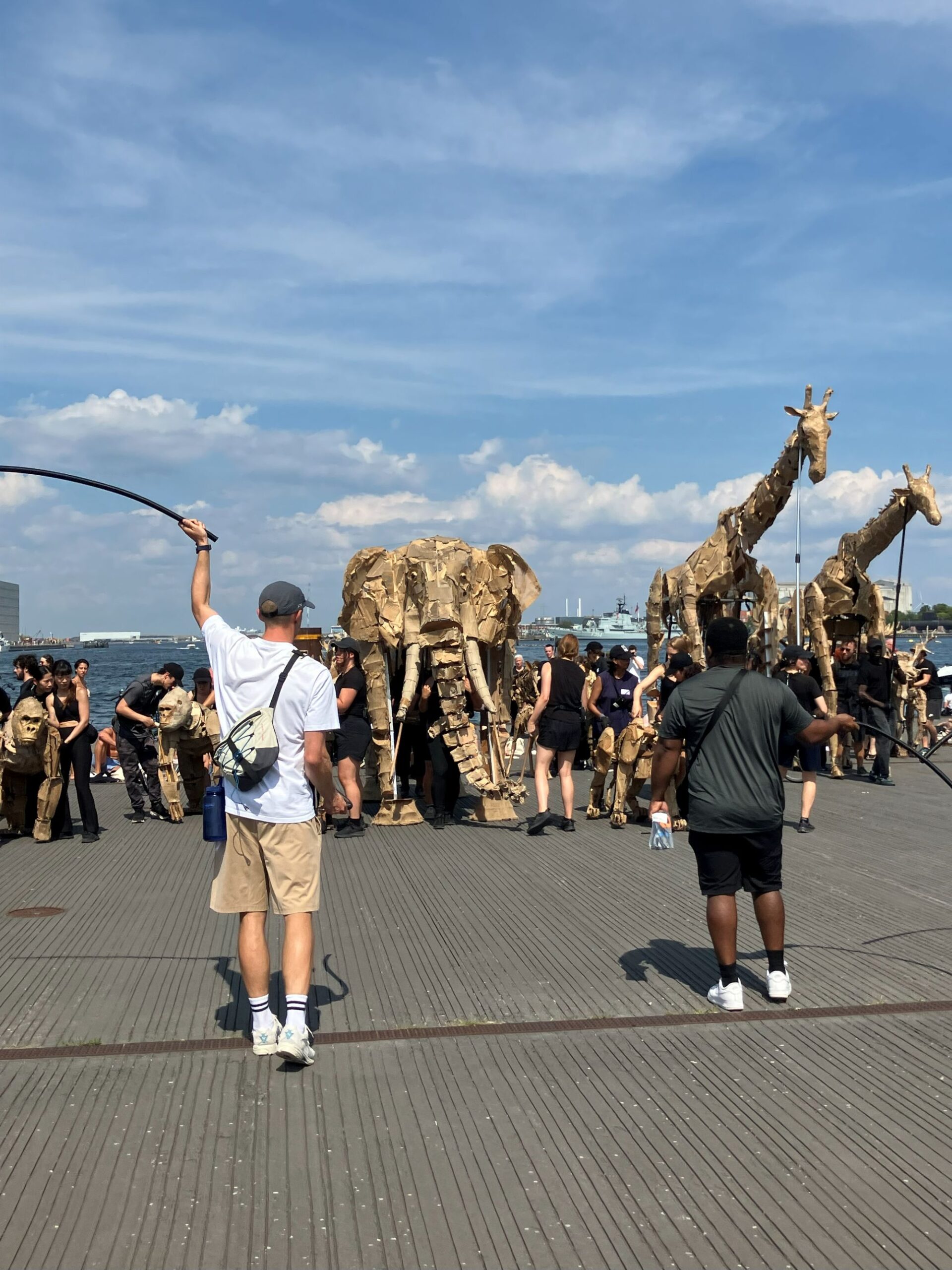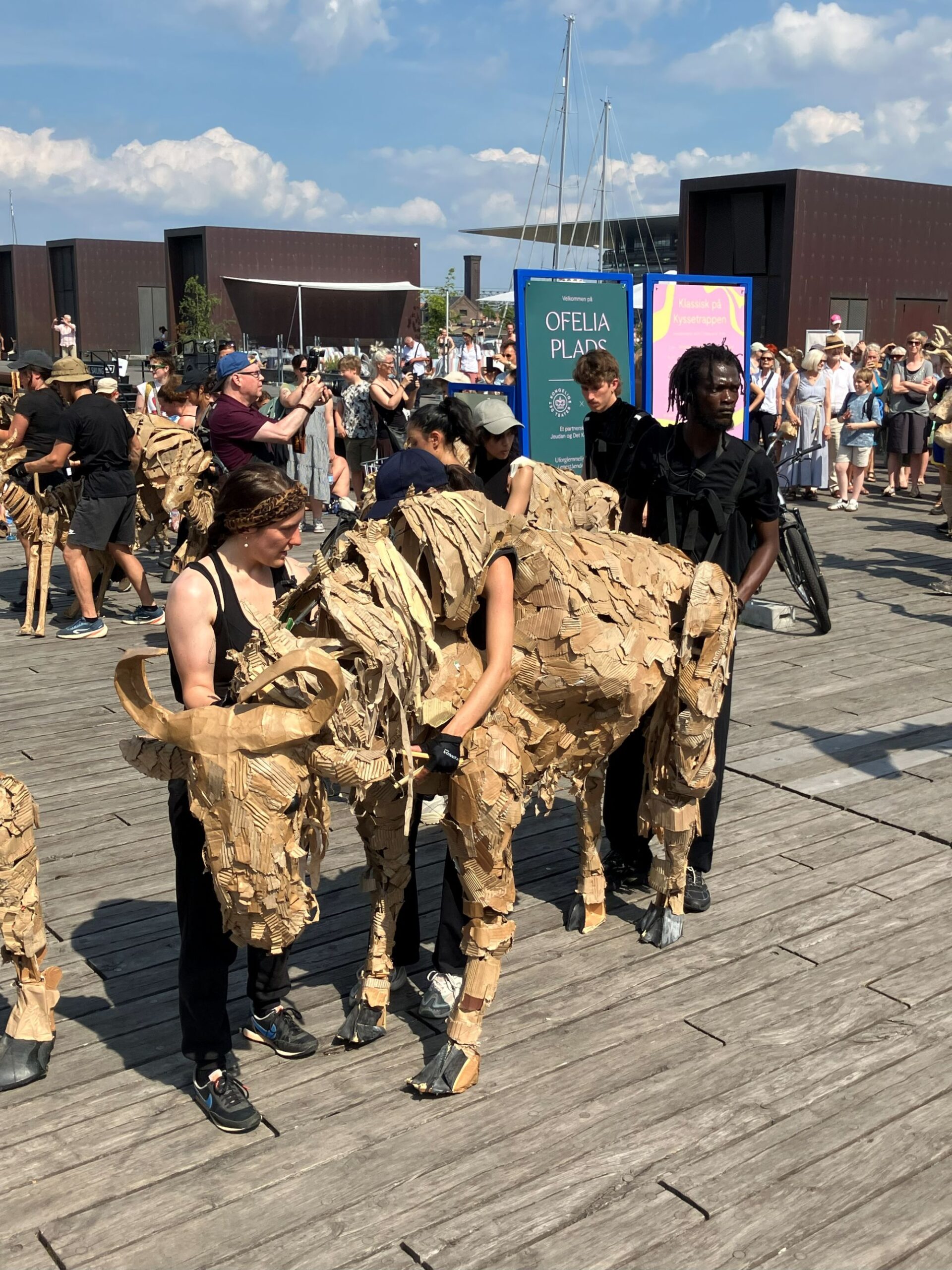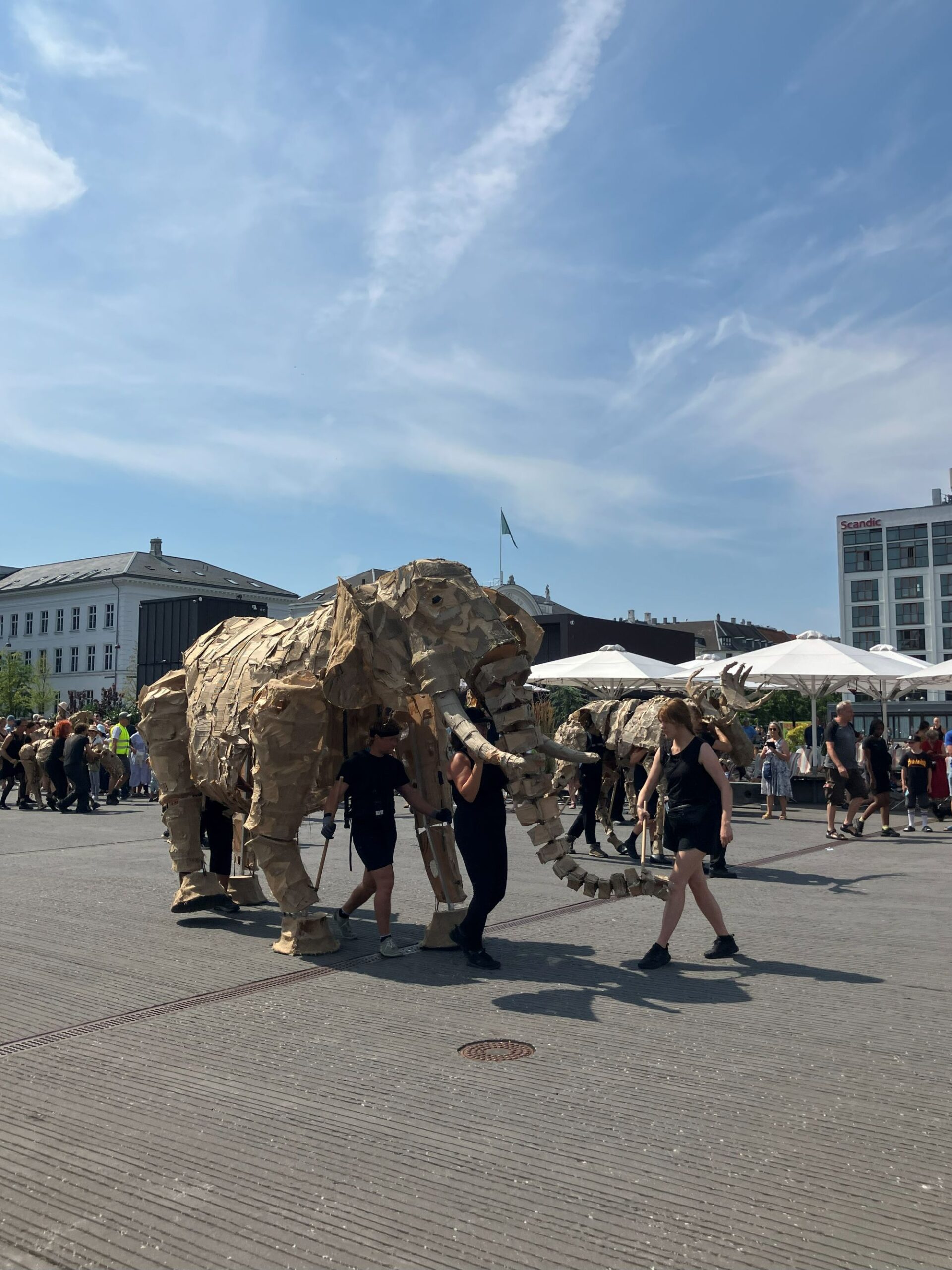 De smukke fuldstørrelse dyredukker i The Herds tilbragte en varm eftermiddag på Ofelia Plads, som led i deres 20.000 km lange rejse fra Congo til Nordkapp for at sætte fokus på klimaforandringer.